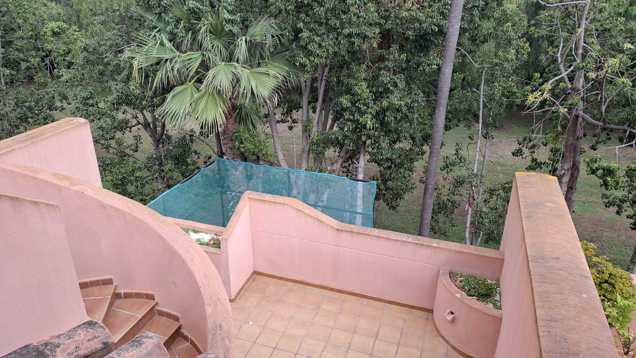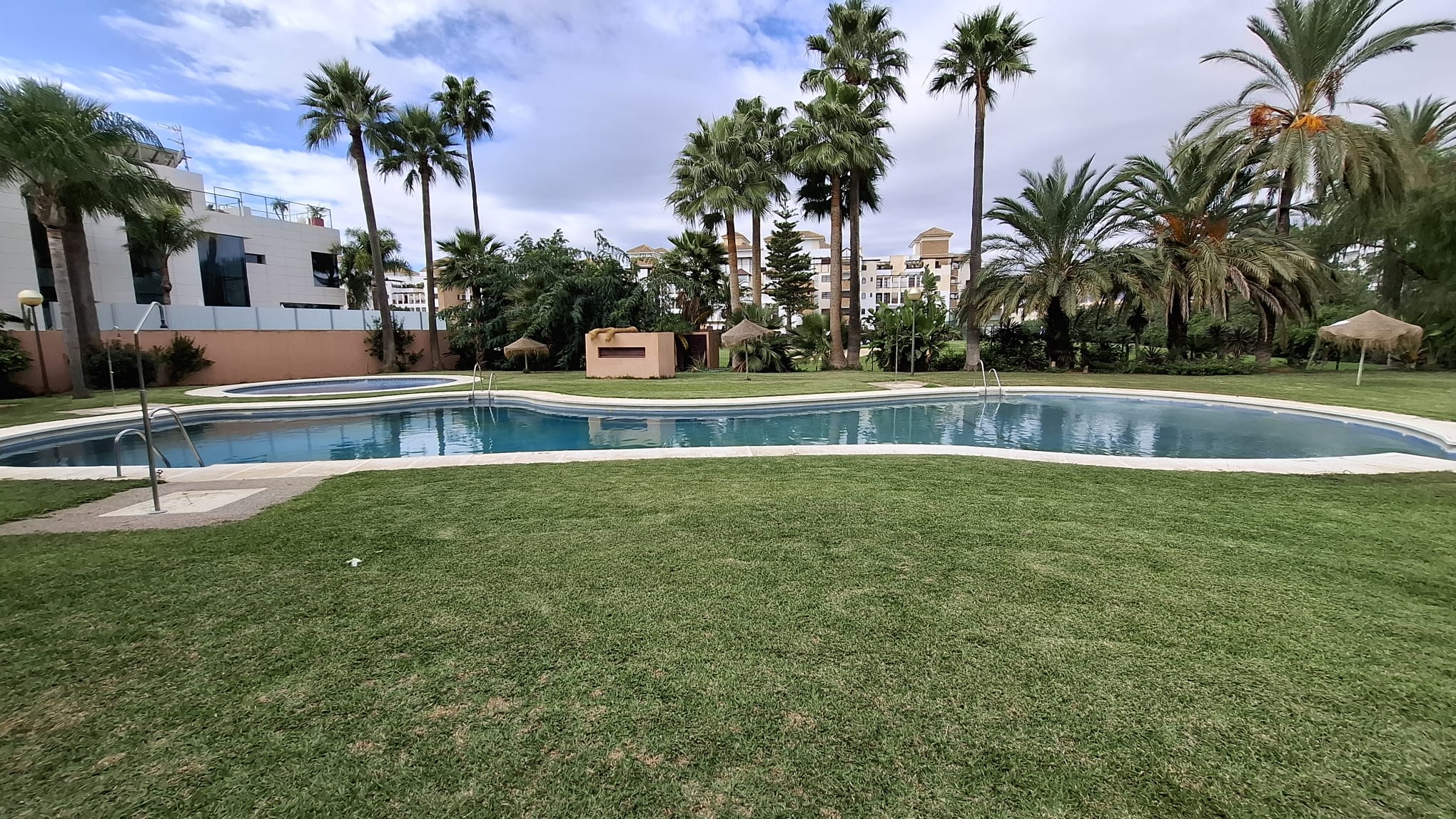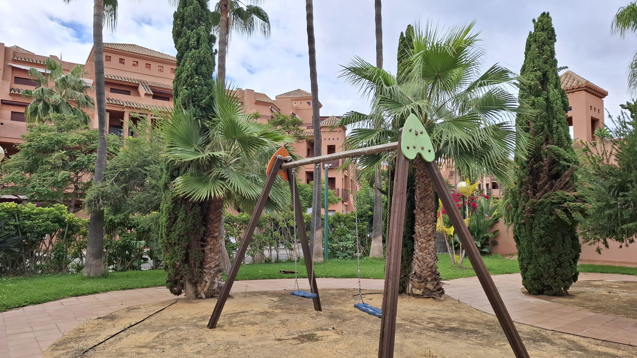 La urbanización está rodeada de jardines y unas magnificas piscinas, parque infantil, etc… y todo frente al campo de golf.